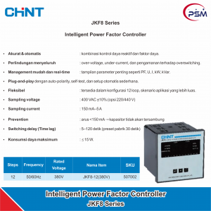 JKF8 Intelligent Low-Voltage : Pengendali Kompensasi Daya Reaktif adalah pengendali khusus yang dapat melakukan kompensasi daya reaktif pada sistem distribusi tegangan rendah.