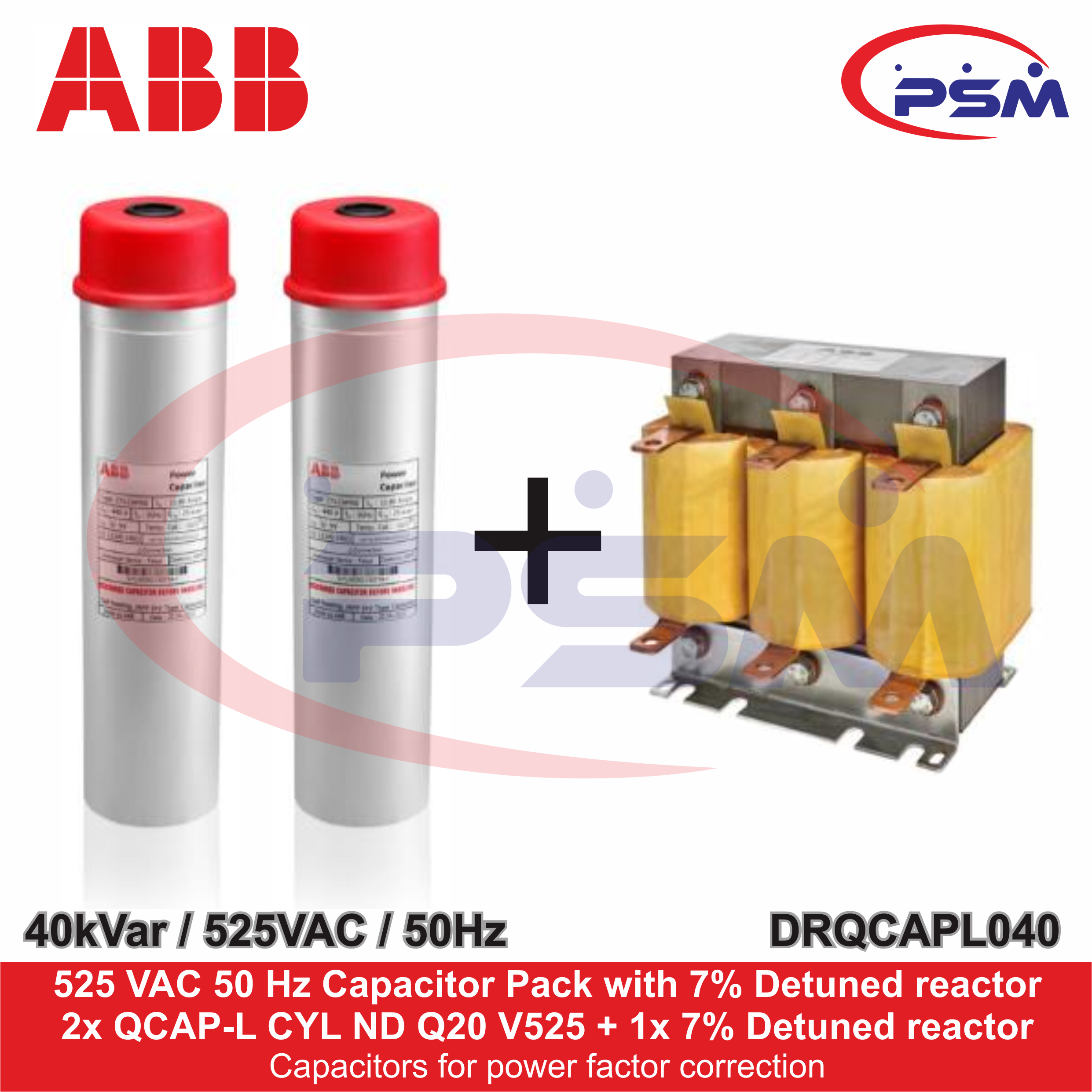ABB PAKET KAPASITOR + 7% DETUNED REACTOR / Q CAP-L CYLINDER CAPACITOR 40kVAr / 525VAC – 50Hz / DRQCAPL040
