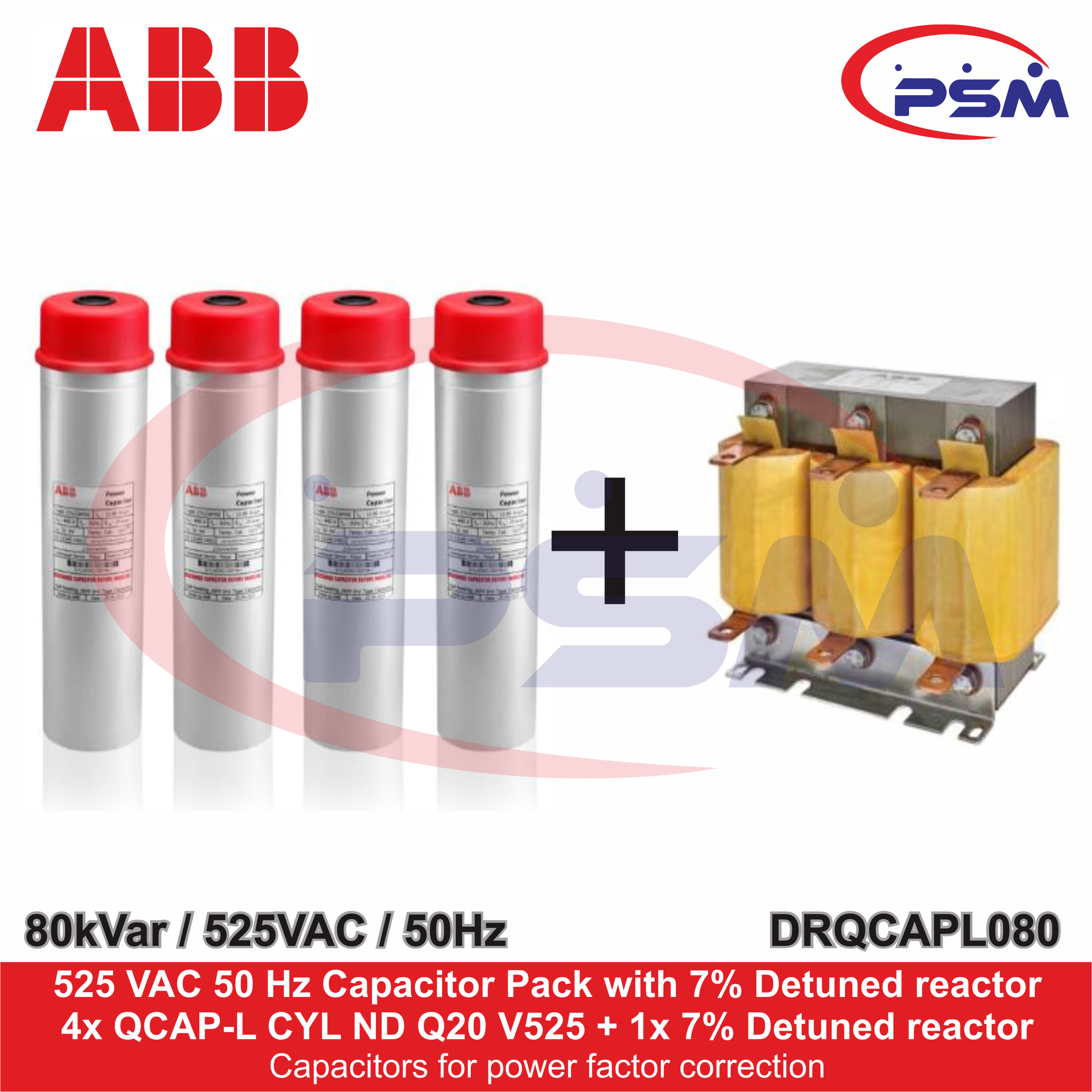 ABB PAKET KAPASITOR + 7% DETUNED REACTOR / Q CAP-L CYLINDER CAPACITOR 80kVAr / 525VAC – 50Hz / DRQCAPL080