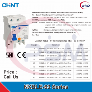 63A – NXBLE-63 1P+N C63 30mA AC Type – 819938 – Rp. 142.039Varian Produk dan Harga NXBLE-63 Series (1P+N / 300mA)