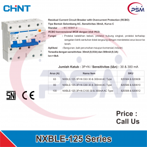 100A – NXBLE-125 3P+N C100 30mA AC Type – 820588 – Rp. 569.499Varian Produk dan Harga NXBLE-125 Series (3P+N / 300mA)