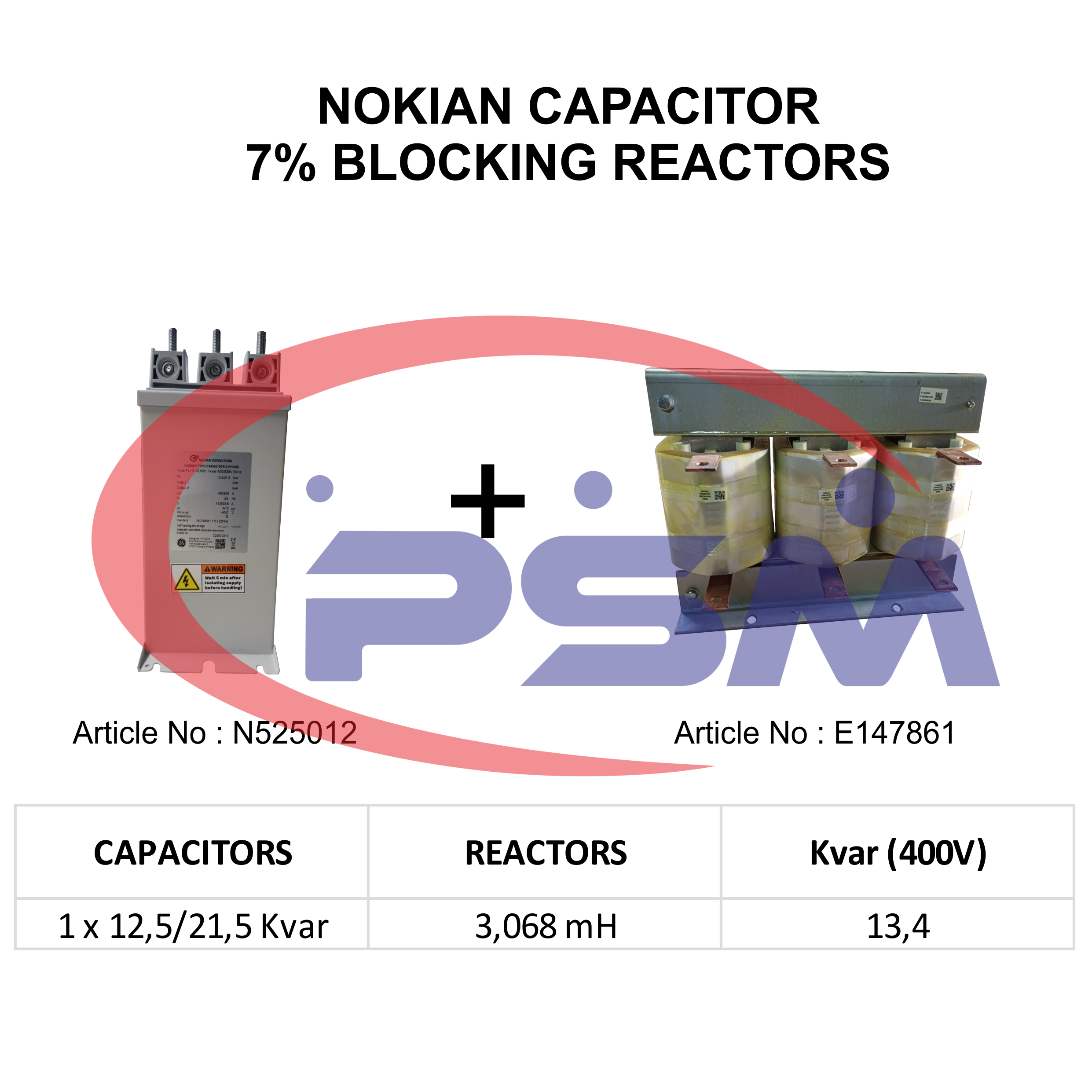 In StockPaket Capacitor Nokian 12,5/21,5 Kvar 400/525V + 7% Detuned Reactor
