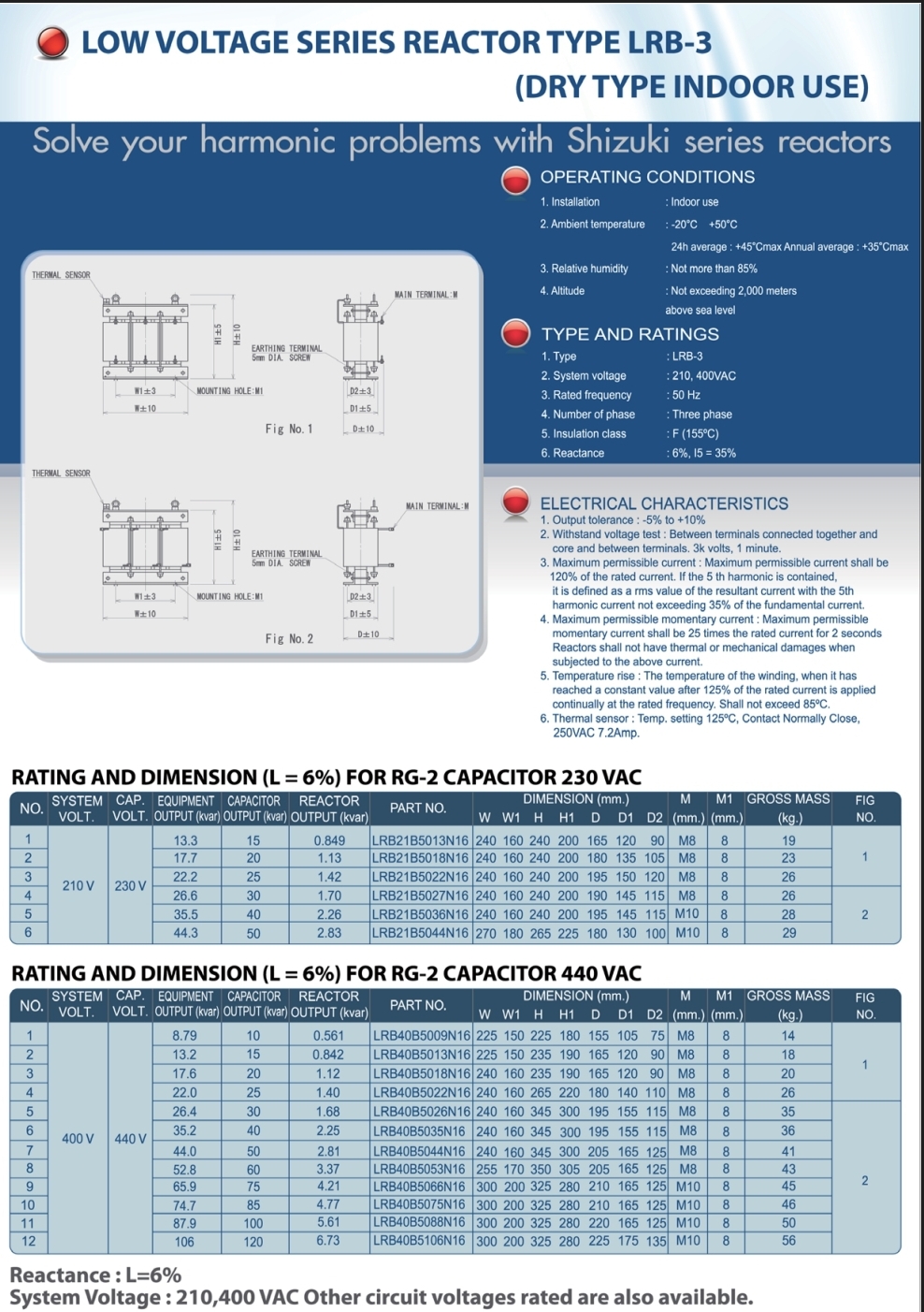 Reactor Shizuki (L=6%) 415V type LRB-3