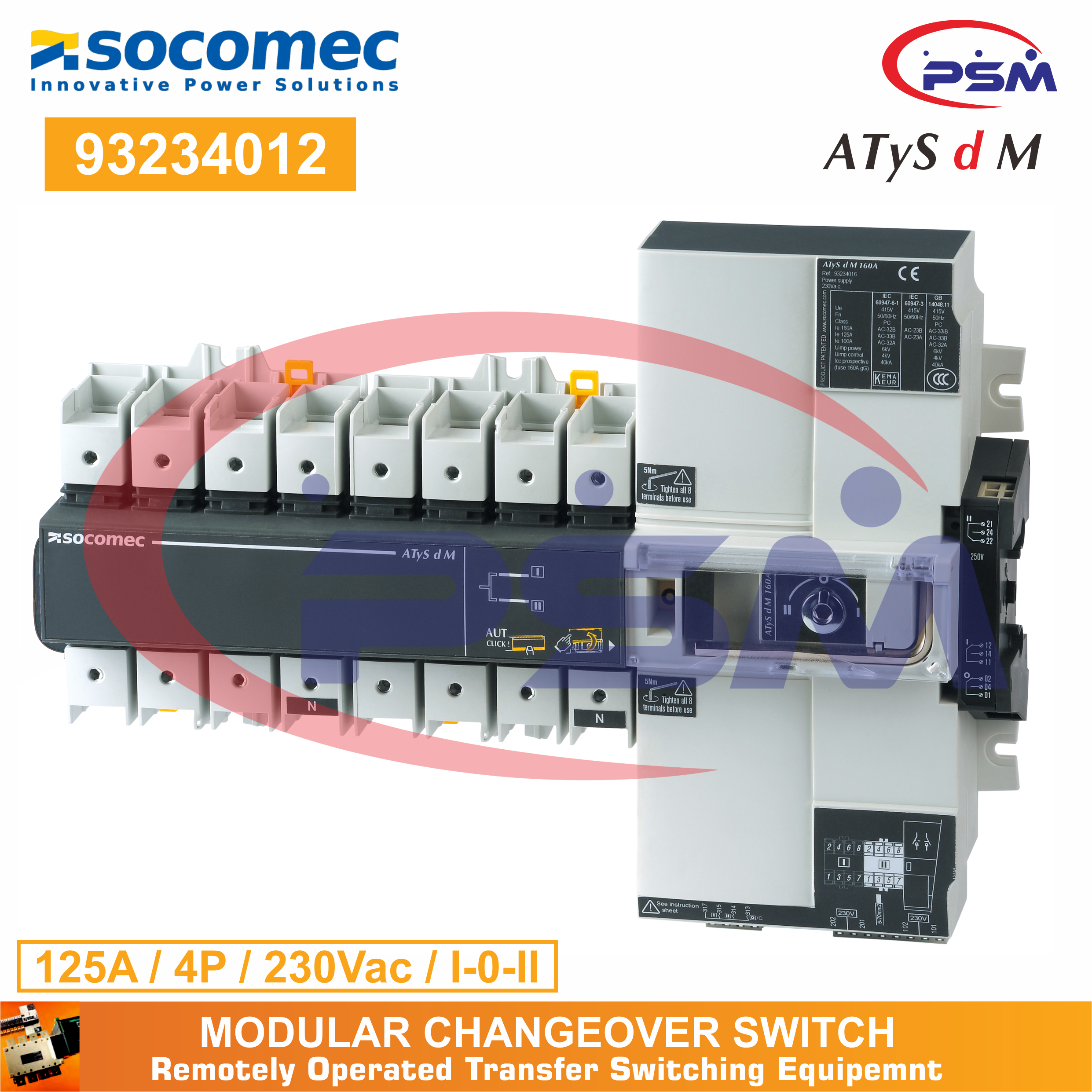 Socomec ATyS d M 125A 4P 230VAC | Remotely Operated Transfer Switch | 93234012
