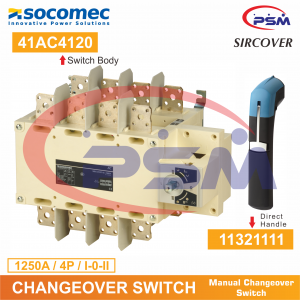 Socomec Sircover Manual Changeover Switch 800A 4P I-0-II w. Direct Handle / 41AC4080 + 11321111
